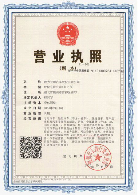 程力專用汽車股份有限公司各類專用汽車的專業(yè)廠家,大型專用汽車廠。國內(nèi)園林綠化、石油化工、市政環(huán)衛(wèi)、壓力容器專用汽車商。注冊(cè)“程力威”牌,產(chǎn)品代碼:“CLW”。東風(fēng)、解放、福田、重汽、陜汽、北奔等公司的重要合作伙伴,主要從事各類專用汽車的業(yè)務(wù),同時(shí)也銷售各大型廠家的整車及配件。公司擁有自行出口權(quán),其主導(dǎo)品種有灑水車系列、吸污(吸糞)車系列、垃圾車系列、掃地車系列、油罐加(運(yùn))油車系列、高空作業(yè)車系列、清障車系列、隨車吊系列、自卸車系列、教練車系列、半掛車系列、化工車系列、消防車系列、廂式(冷藏車)系列、牽引車系列、粉粒物料車系列、攪拌車系列、壓力容器系列、專用車配件等十八大系列300多個(gè)品種車型。同時(shí)批發(fā)東風(fēng)、解放、楚風(fēng)各種二類底盤。